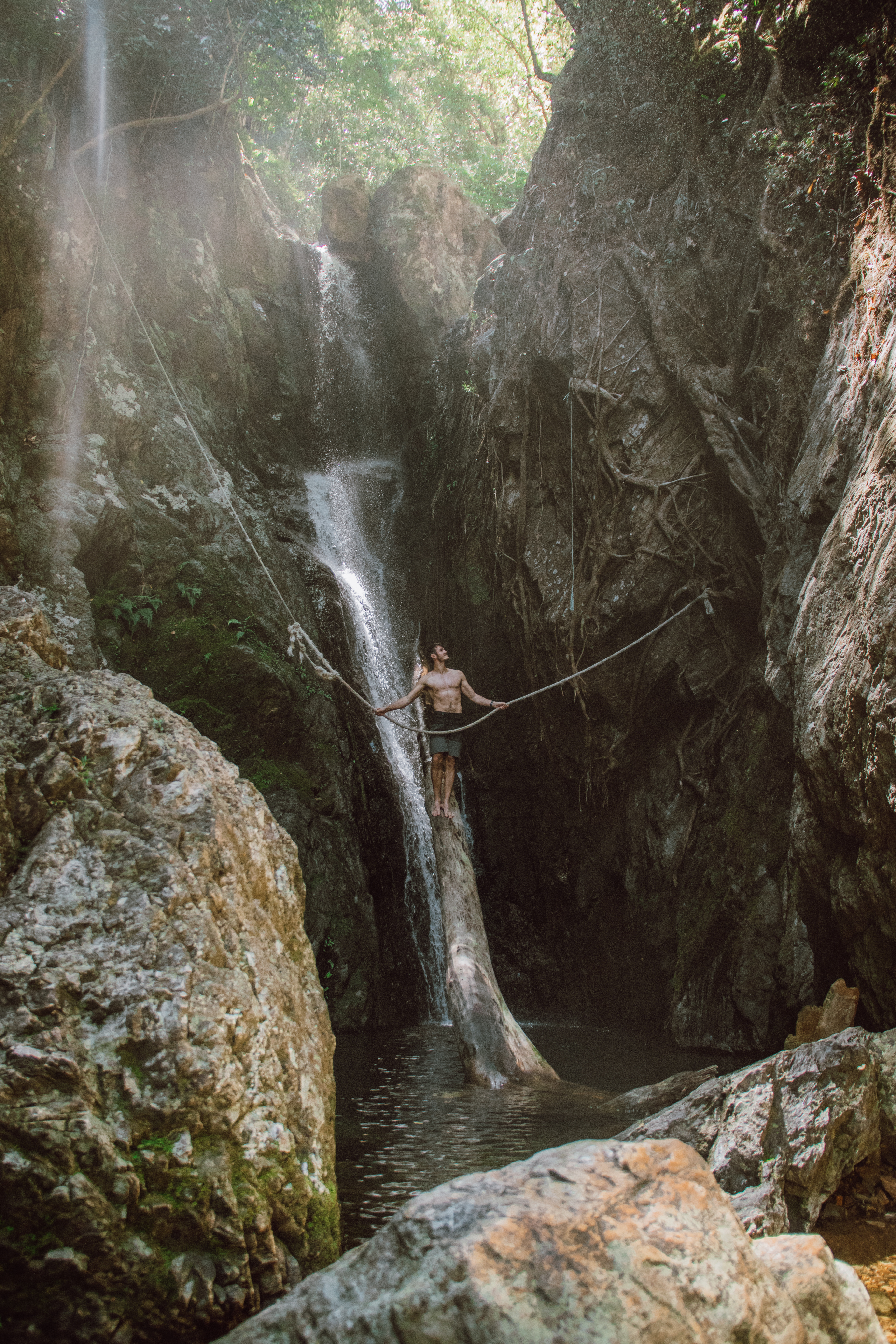 However I would suggest taking the path to the left of the carpark. This will take you into the jungle…. follow the path for around 5 to 10 minutes until you see that it either heads to the right with a really steep climb or it heads right to join the river. Turn right and walk up the rocks in the river for about 5 minutes until you get to Fairy Falls, a beautiful hidden waterfall!!