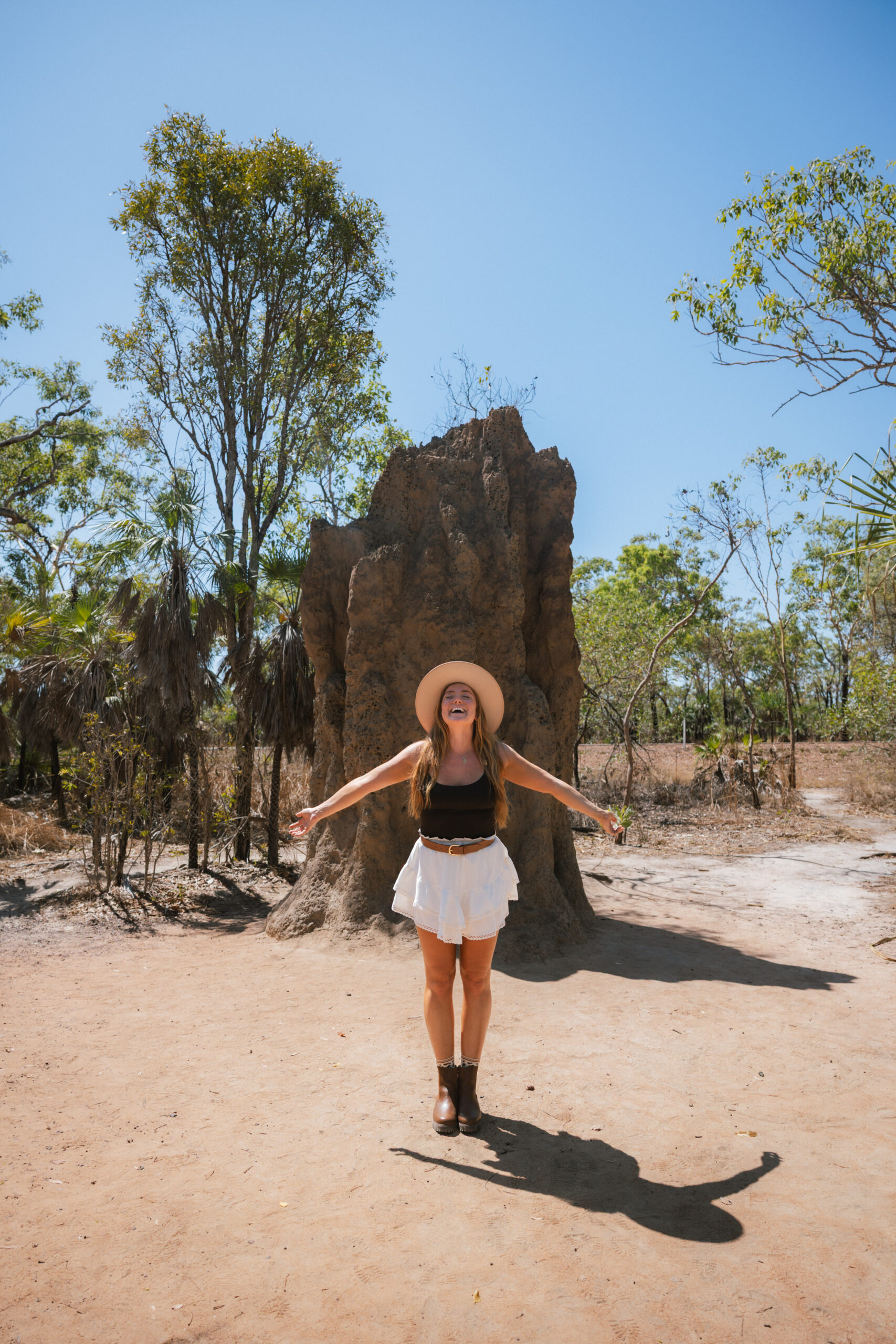 One thing you’ll spot all over Litchfield National Park are the massive termite mounds, some of them are over two metres tall! These creatures are tiny, but they build entire architectural cities that can last more than 50 years. My favourite were the Magnetic Termite Mounds which are all perfectly aligned north to south, acting like a giant natural compass. Termites do this to regulate the inside temperature and avoid the harsh Top End sun. Genius, right?